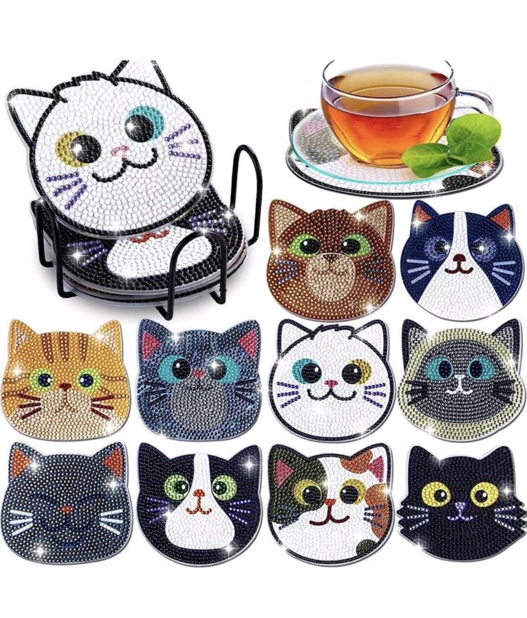 A set of 10 coasters with the metal holder and all needed tools.