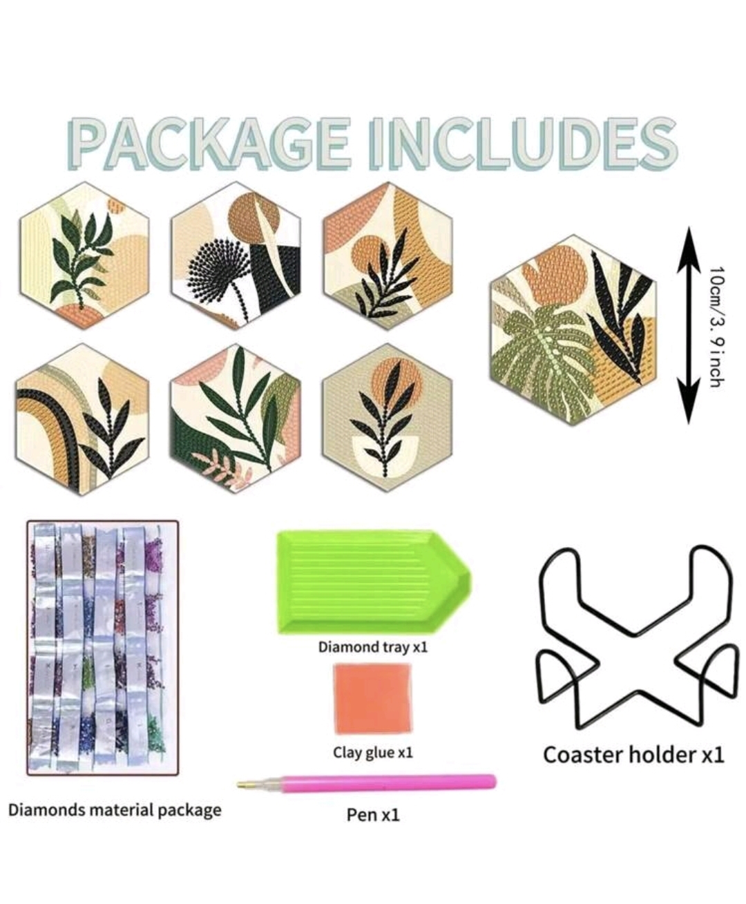 A set of 7 coasters with all needed tools.