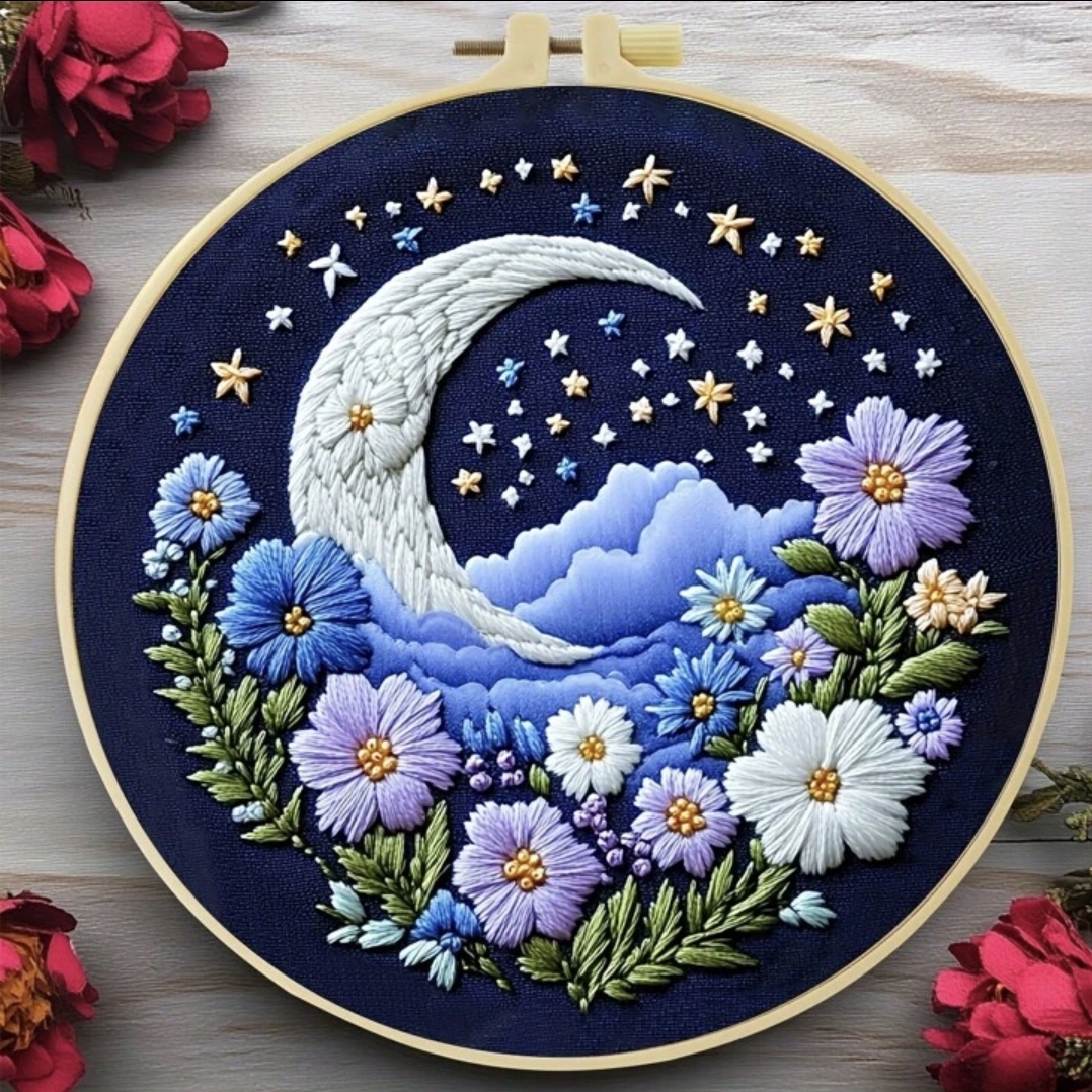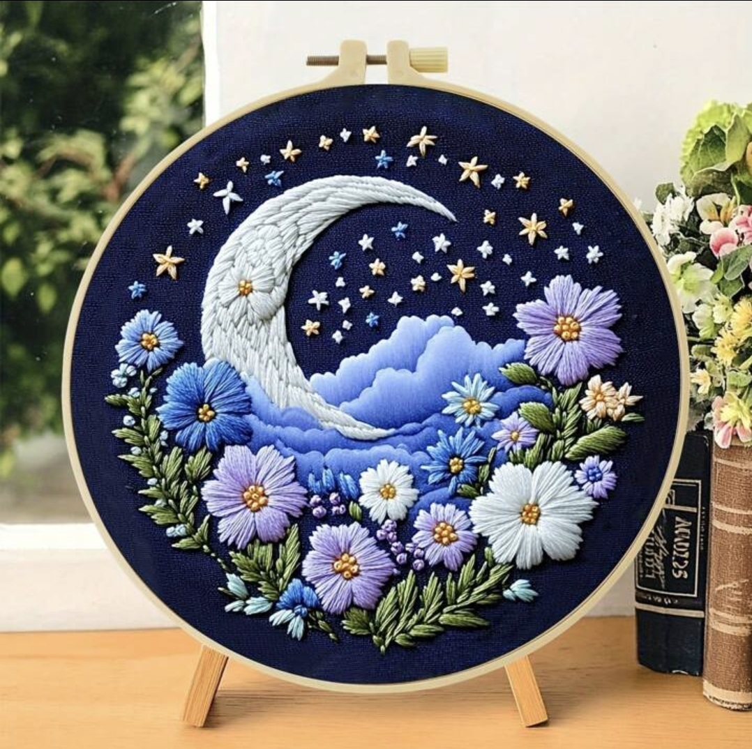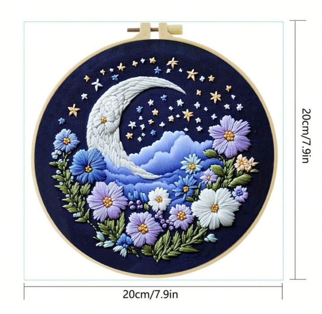 Embroidery kit with all the needed tools and instructions are included.